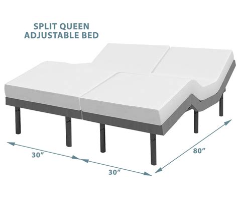 King Size Adjustable Bed Frame Dimensions . The mattress height depends on the brand, but height generally ranges from 8 inches to 14 inches. For queen and king adjustable size beds the standard bed length is 80 however, all bed widths are available in 74, and 80 lengths to assure your comfort.