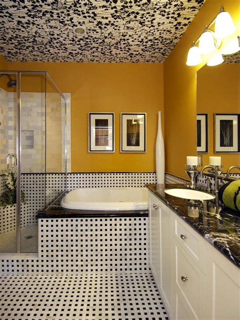 How do i get yellow stains off my bathroom ceiling? When water escapes the confines of pipes or enters from the home’s exterior, the moisture gradually seeps into whatever porous surfaces are nearby. If the paint on the walls is white, a light yellow on the bathroom ceiling will help create a brighter room. Let’s cover these two in detail..